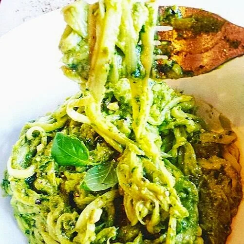 Pasta de Zucchini con Salsa de Pesto y Aguacate